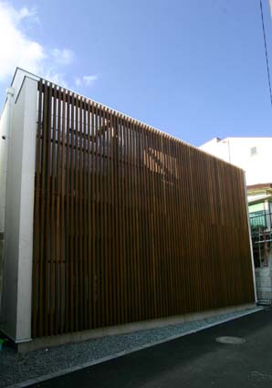 木製ルーバーが落ち着いた佇まいを演出している