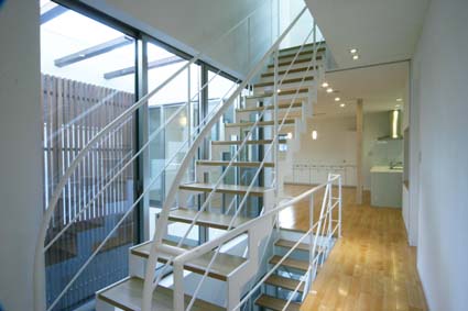 中庭方向を見る。左にはスレンダーな階段