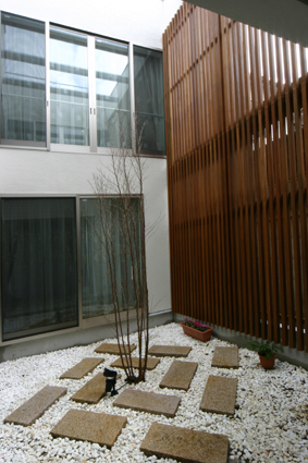 中庭は木製ルーバーで