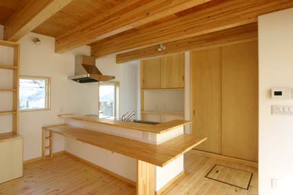 床は無垢のフローリング、壁・天井は火山灰が主原料の自然素材