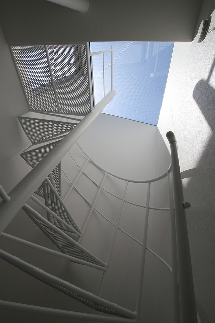 パンチングメタルの踏板からやわらかく光が差し込む