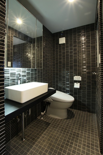 黒で統一されたシックなパウダールーム