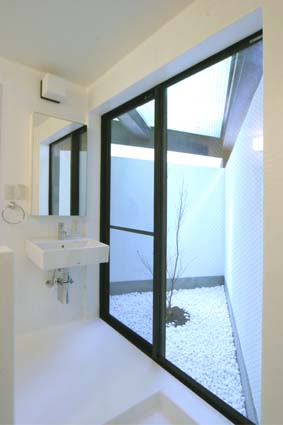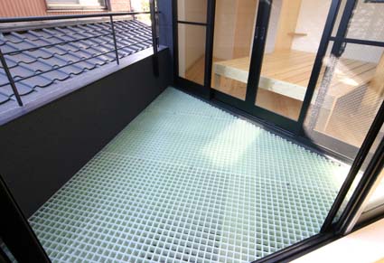 テラスの床はグレーチング、下階の中庭に光を運ぶ