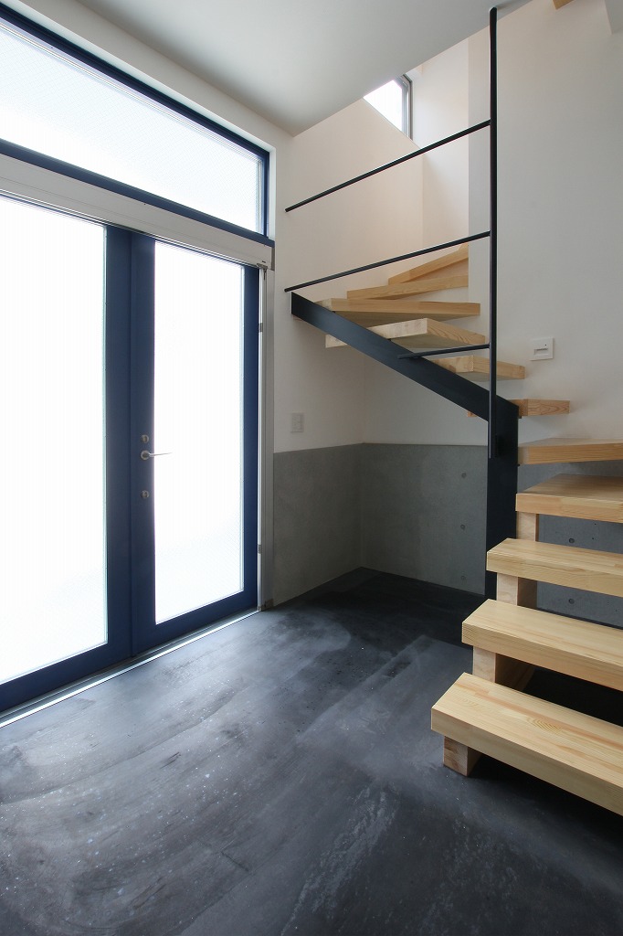 踏み板のみの階段は窓からの光を通して明るい