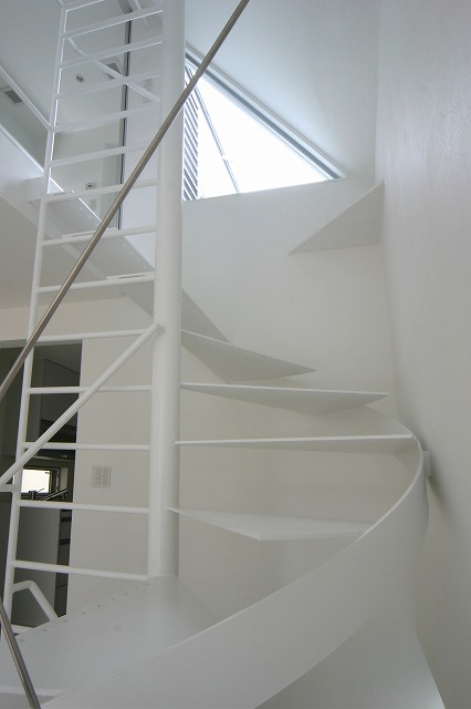 階段はスレンダーな鉄骨階段を採用、