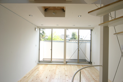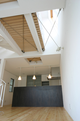 リビング上部も吹抜とスノコ状の床になっていて