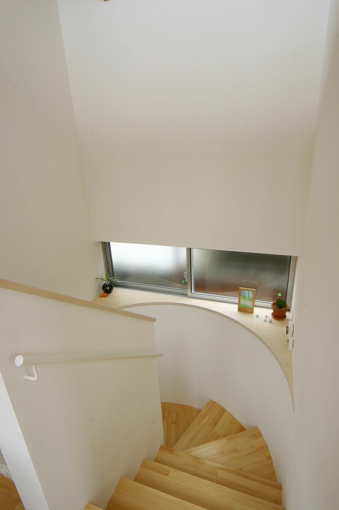 階段は丸く加工し、飾り棚として利用している