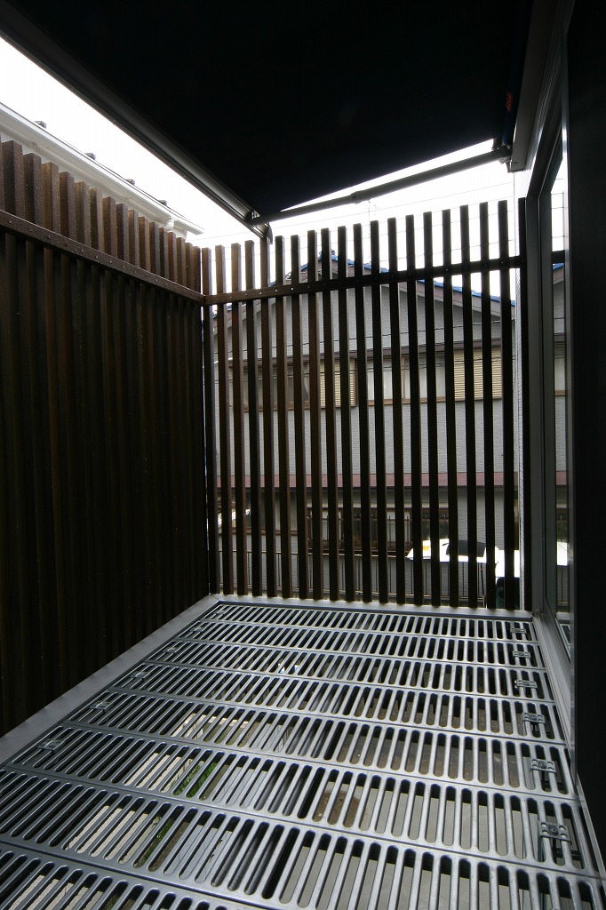 木製ルーバーに囲まれたバルコニー、