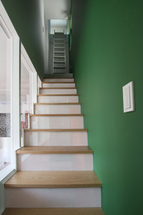 階段の壁は色分けしている